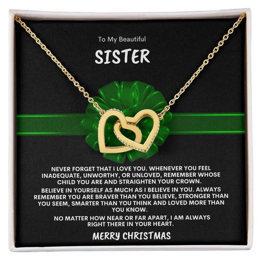 To My Beautiful Sister | Interlocking Hearts Necklace | Merry Christmas
